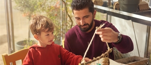 Aide les oiseaux à se nourrir en automne. Crée ta propre guirlande de nourriture pour oiseaux avec des morceaux de pommes et des noix et suspends-la dans ton jardin ou sur ton balcon.
