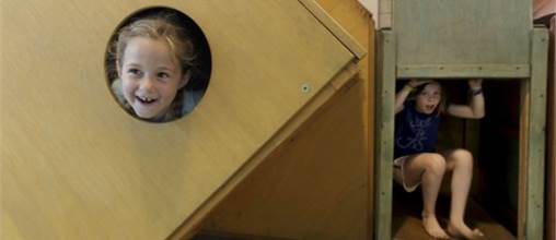 Ils peuvent développer leur sens de l'équilibre sur notre slackline, s'entraîner à l'alpinisme sur notre petit mur d'escalade et apprendre à s'orienter dans les couloirs de notre spéléobox.