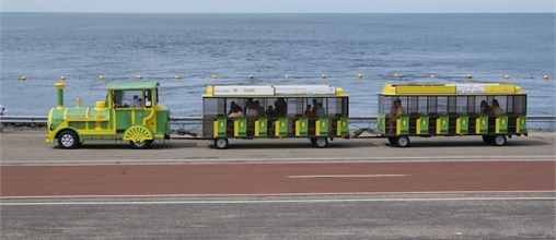 Dans le petit train nostalgique, vous découvrez le joli cadre du domaine. À votre aise. Qui est pressé en vacances ?
