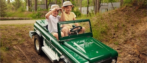 Jouw kids krijgen direct het echte safarigevoel zodra ze in hun eigen jeep stappen, met een compleet safaripakket: sleutels voor de jeep en safarihelmen.