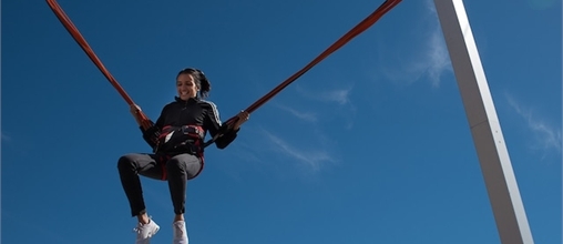 De Bungee Trampoline is een combinatie van bungee-elastieken en een trampoline. Het resultaat is dat je extra hoog kunt springen en zelfs salto's kunt maken, op een absoluut veilige manier. Leuk voor volwassenen en voor kids.