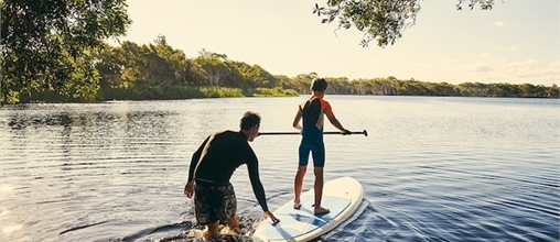 Stand up paddle, of suppen, wordt gedaan op een speciale en extra stabiele surfplank met een lange peddel. U gaat op de plank staan en peddelt door het water. Het klinkt heel eenvoudig en toch... Pret gegarandeerd!