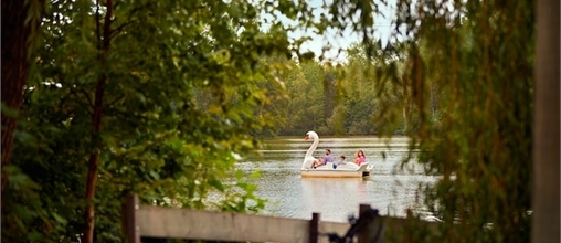 Bij mooi weer ziet het meer er erg aanlokkelijk uit. Leuk idee: met z'n allen waterfietsen huren voor een rondje op het parkmeer.
