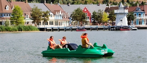 Bij mooi weer ziet het meer er erg aanlokkelijk uit. Leuk idee: met z'n allen waterfietsen huren voor een rondje op het parkmeer.