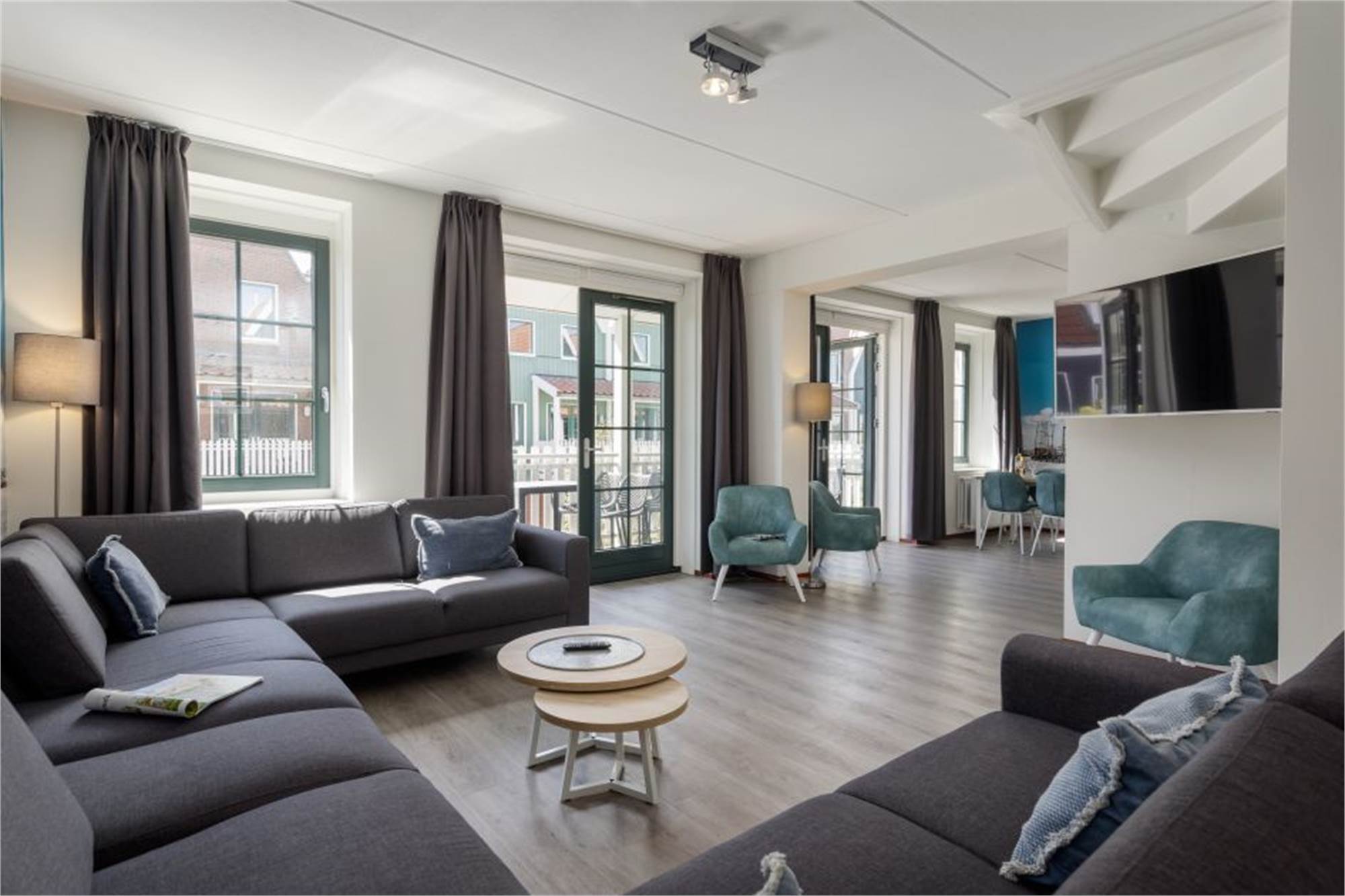 Deze familievilla is geschikt voor 12 personen en heeft een trap naar de entree op de eerste verdieping. Hier vind je de woonkamer met smart-tv en de open keuken die is voorzien van onder andere een vaatwasser, filterkoffiezetapparaat en magnetron. Op deze verdieping zijn daarnaast 2 aparte toiletten en 2 slaapkamers met elk 2 eenpersoonsbedden. Op de bovenverdieping bevinden zich de overige 4 slaapkamers met elk 2 eenpersoonsbedden. Daarnaast zijn er 2 badkamers met douche en 2 aparte toiletten. De villa heeft een gemeubileerd balkon en je kan gratis gebruikmaken van wifi. Parkeren kan op de centrale parkeerplaats op het park.