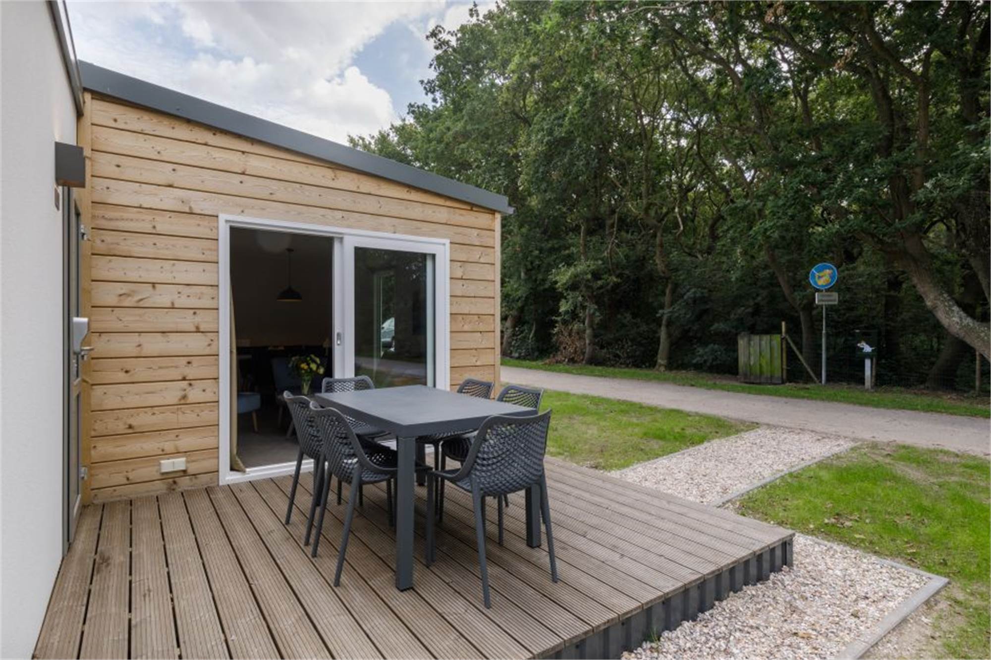 Dit nieuwe chalet is gelijkvloers en geschikt voor 6 personen. De woonkamer is voorzien van een smart-tv en de keuken beschikt onder andere over een combimagnetron en vaatwasser. Er zijn 3 slaapkamer aanwezig, alle kamers zijn voorzien 2 eenpersoonsbedden. Er is 1 badkamer met inloopdouche in dit chalet, het toilet is apart. Buiten vind je een terras met tuinmeubilair.